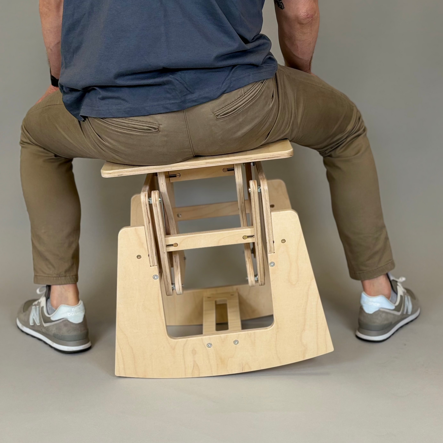 An ergonomic motion chair designed to keep your body subtly active while sitting. Its flexible base allows gentle rocking and shifting, helping to improve posture, reduce back tension, and boost circulation - ideal for home offices or anyone looking to avoid the stiffness of static sitting.