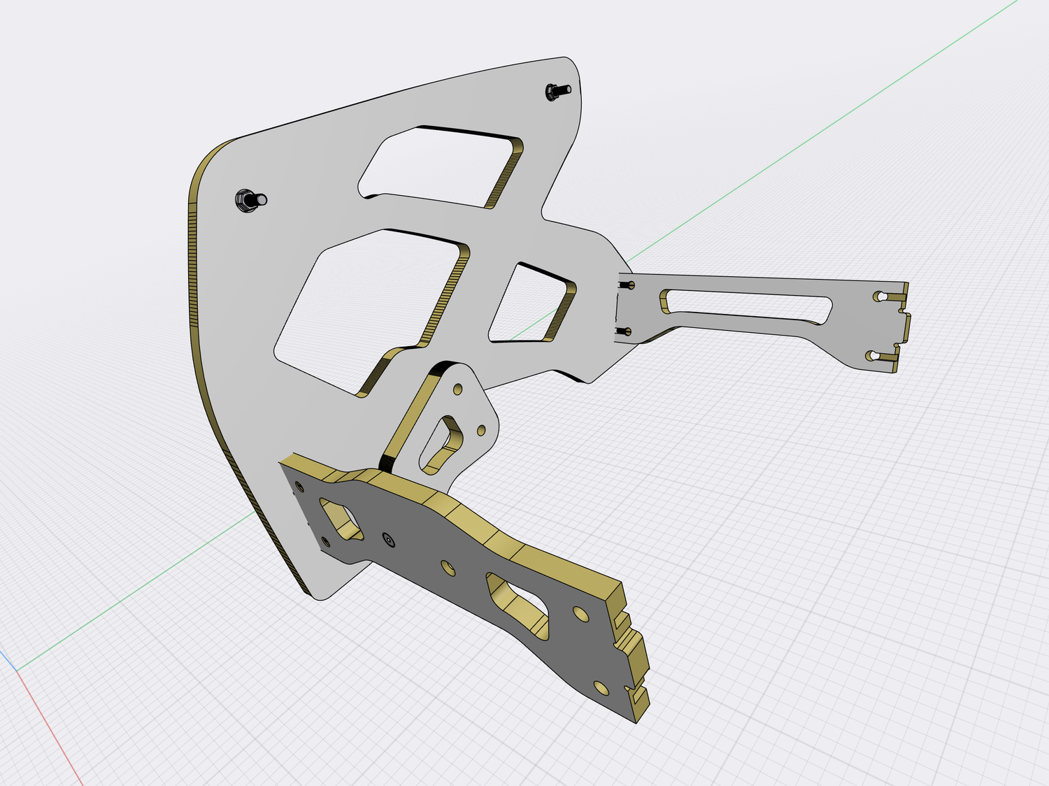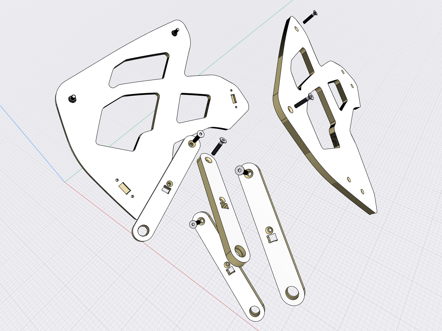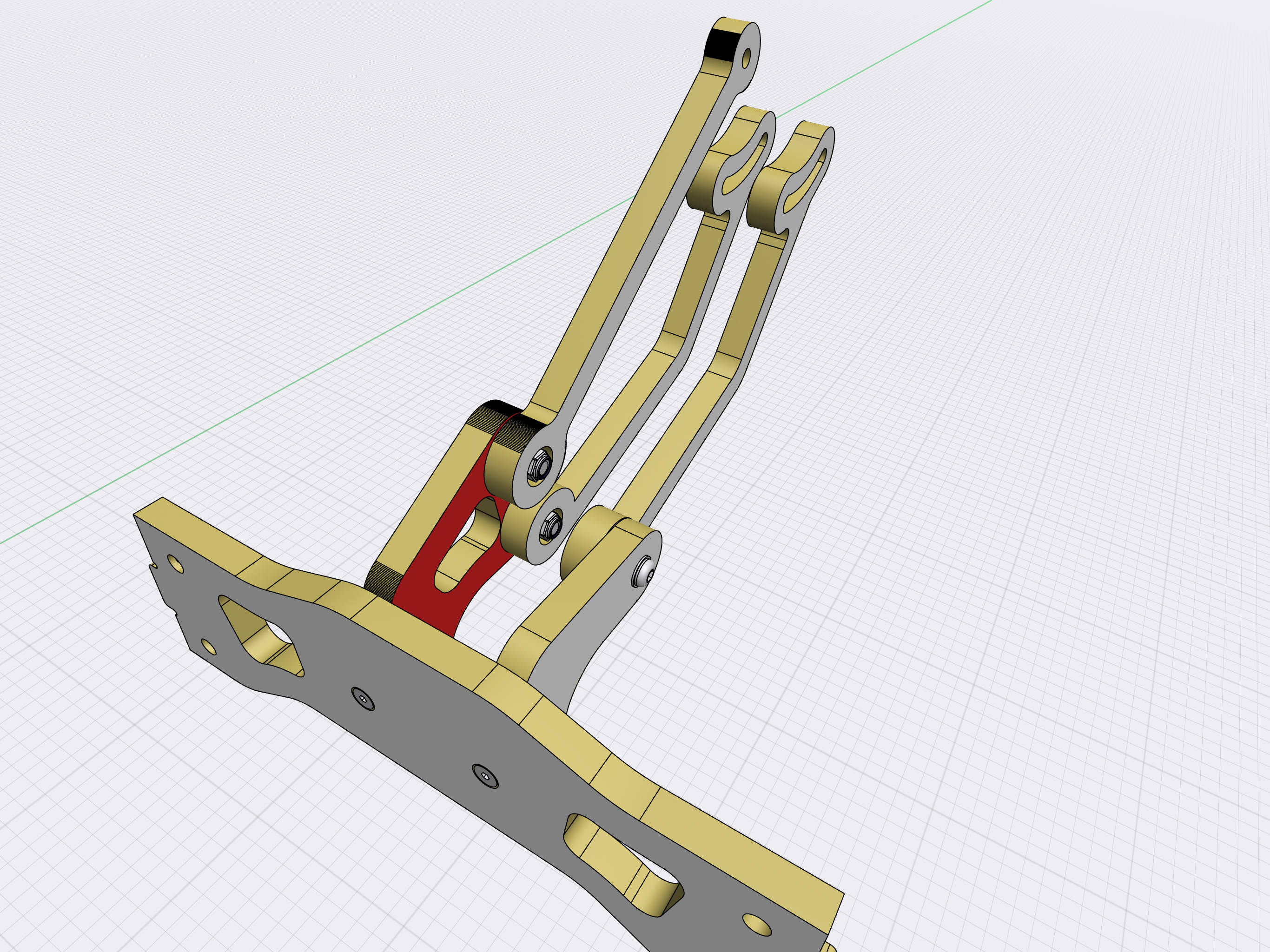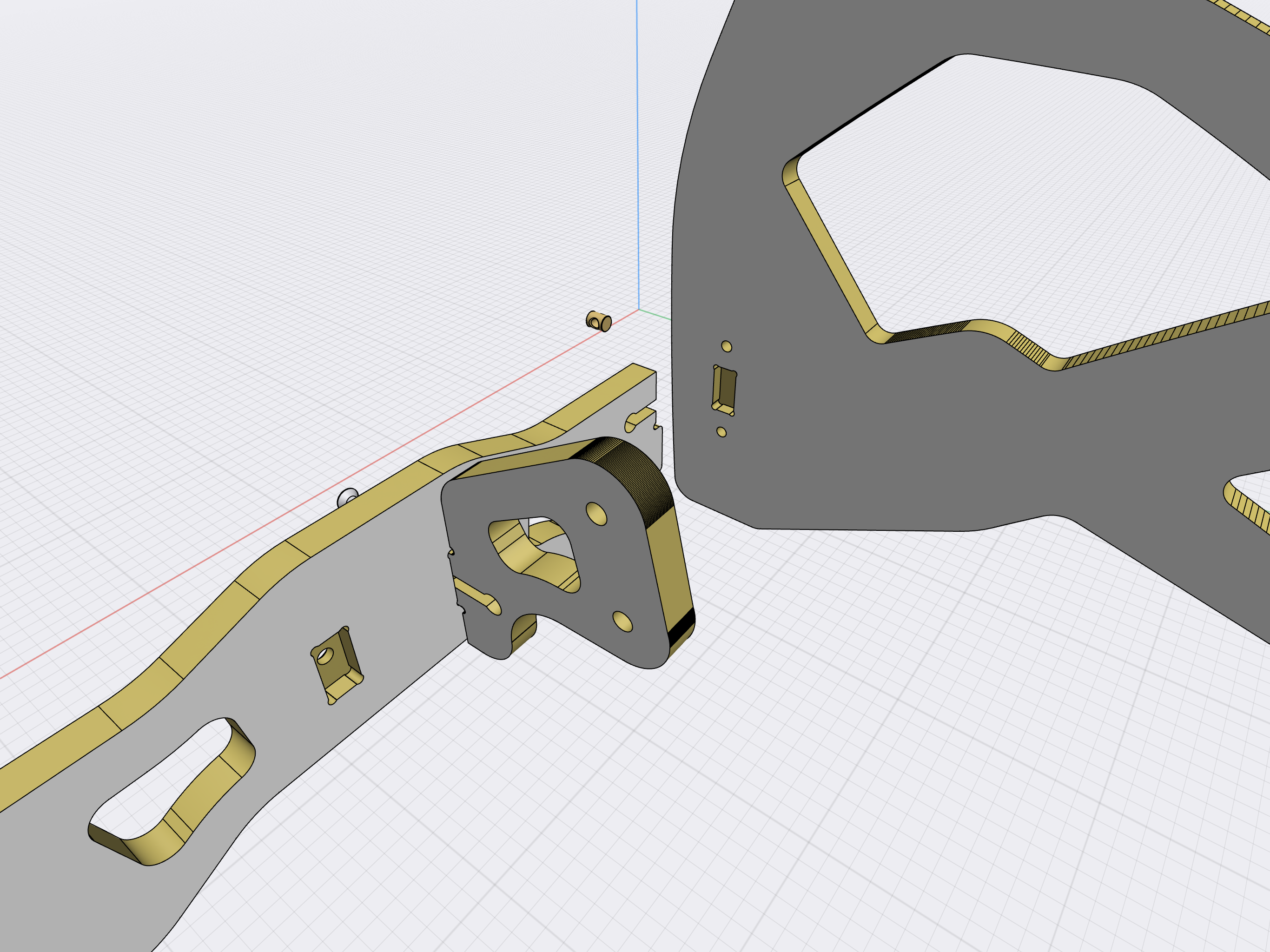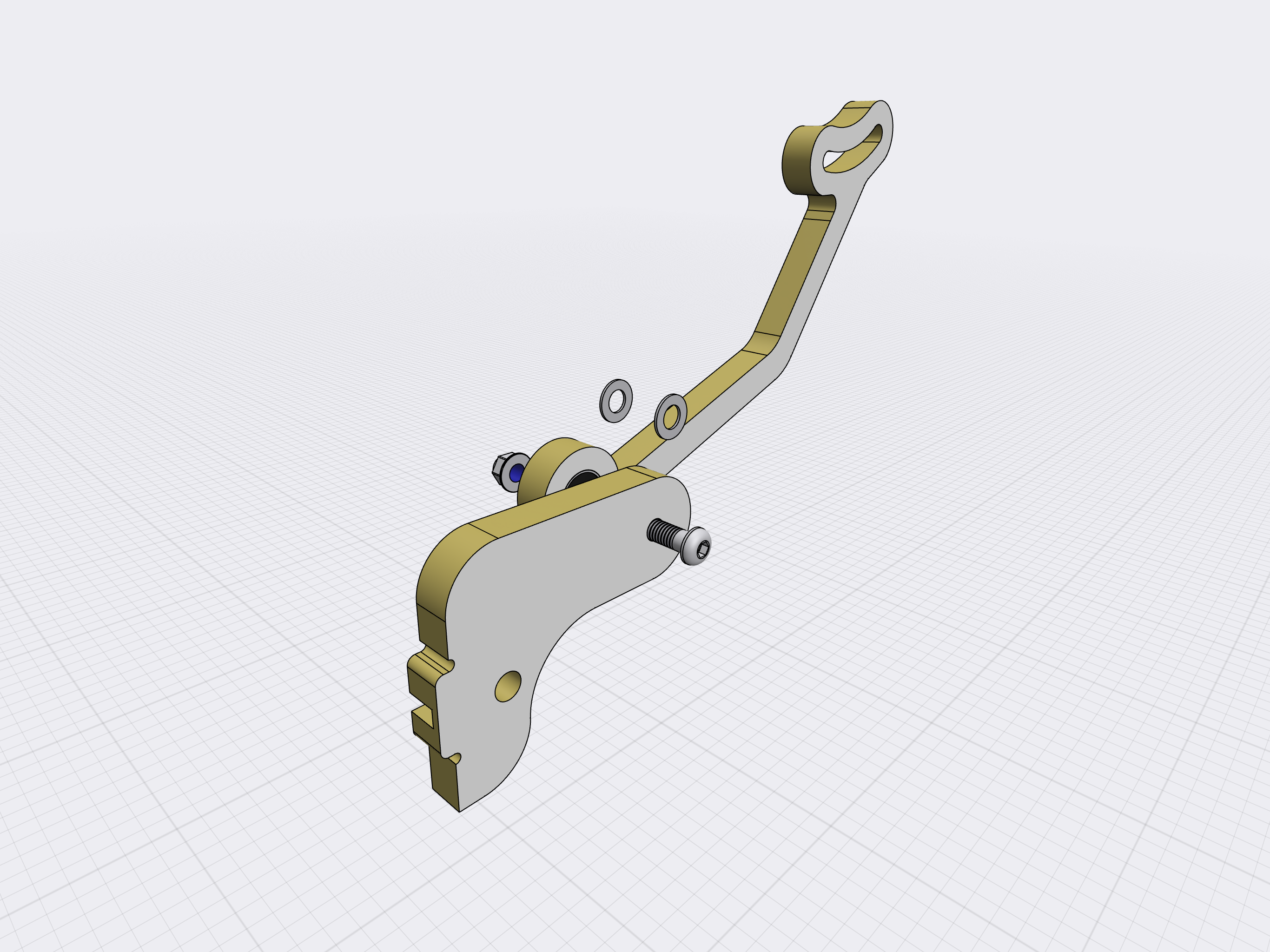 The black knob adjusts the toy base angle. Use 4 washers between every moving part. On the upper bolt there will be the L-shape rod attached.