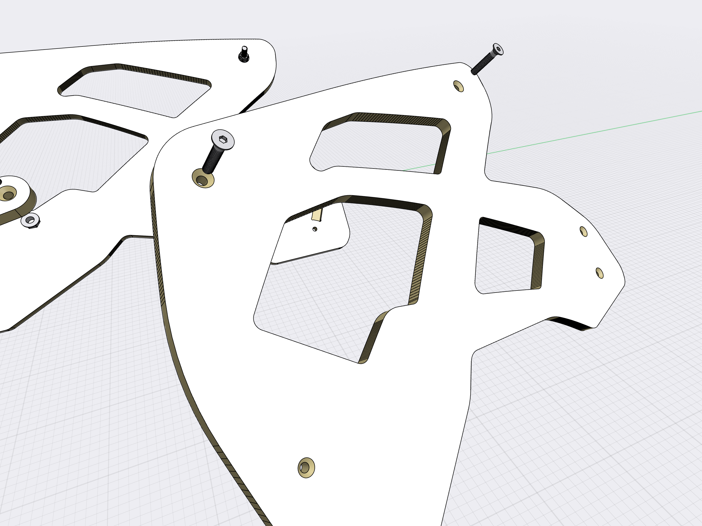 Use 8 flat head screws and flange nuts with both side panels and 4 swing arms. Tighten screws in countersink holes.