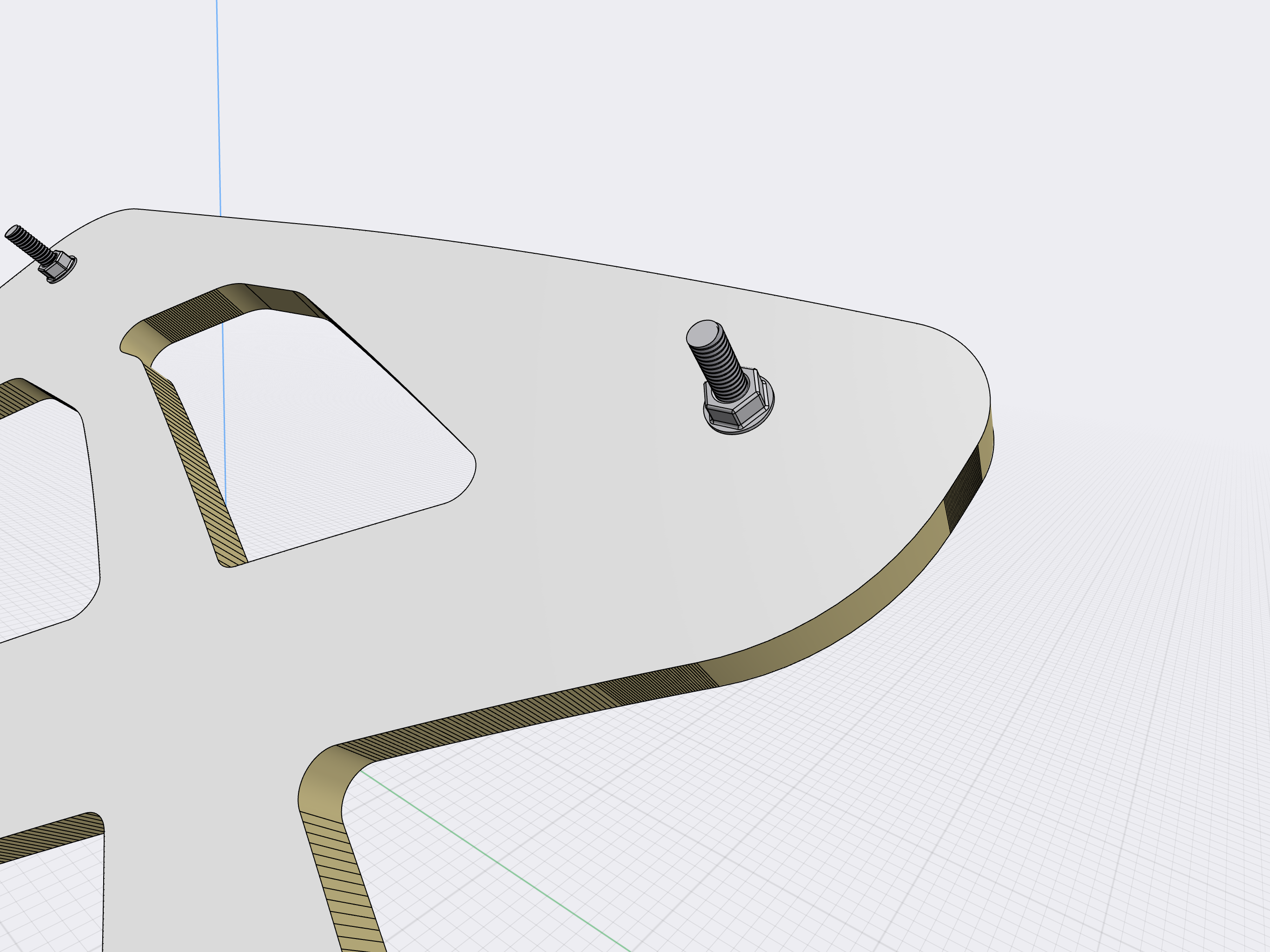 To attach the toy base to the rods, use 2 long round head bolts, washers, Nyloc nut and the black knob.