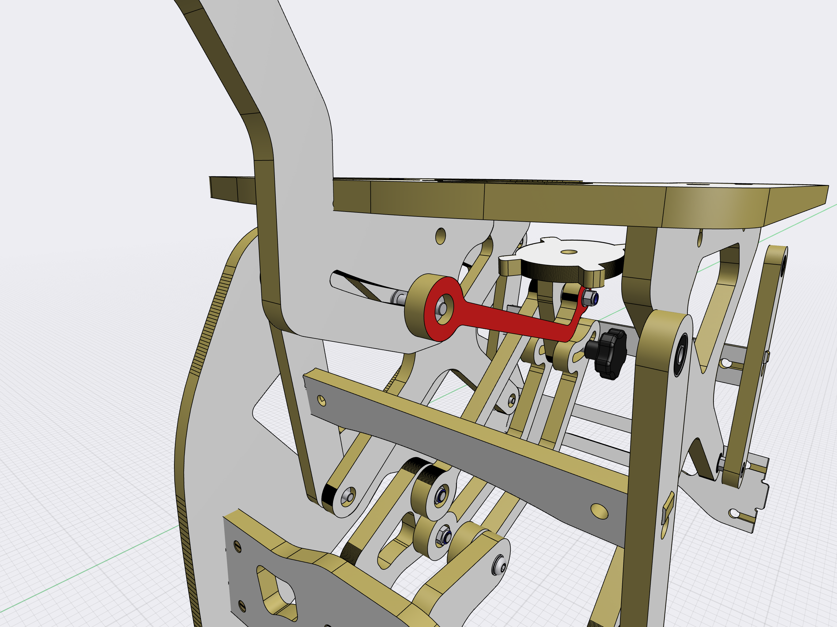 The knob allows you to adjust the stroke length. The final step is to attach the side panel and tighten all the nuts.